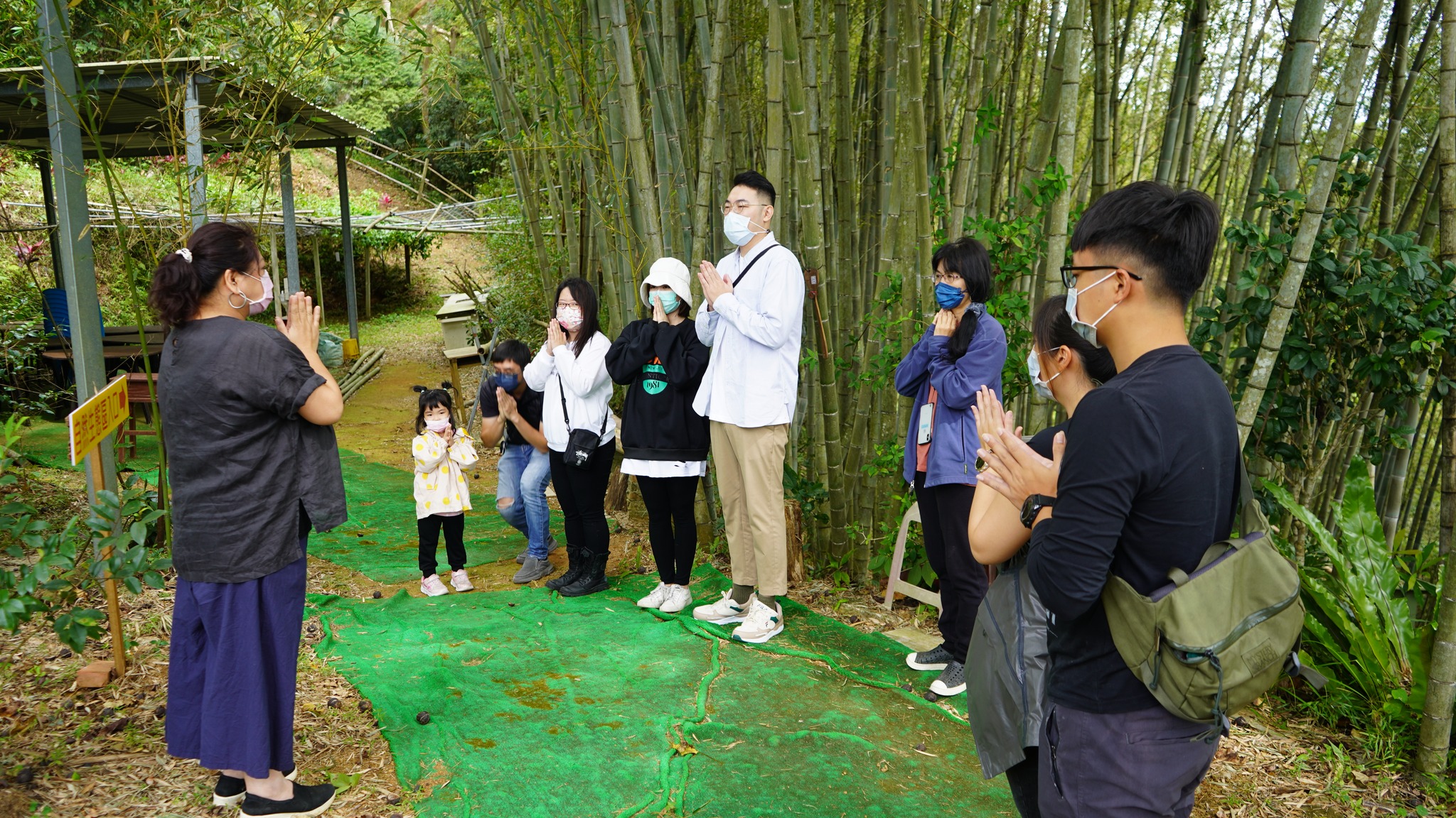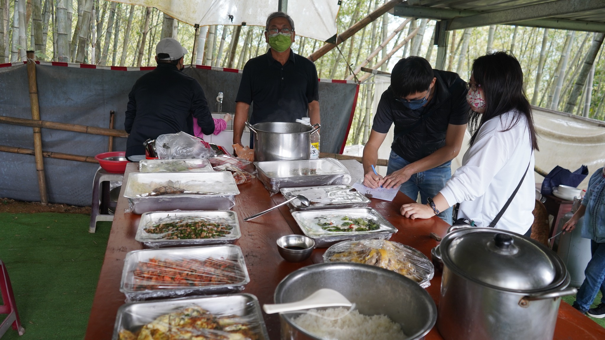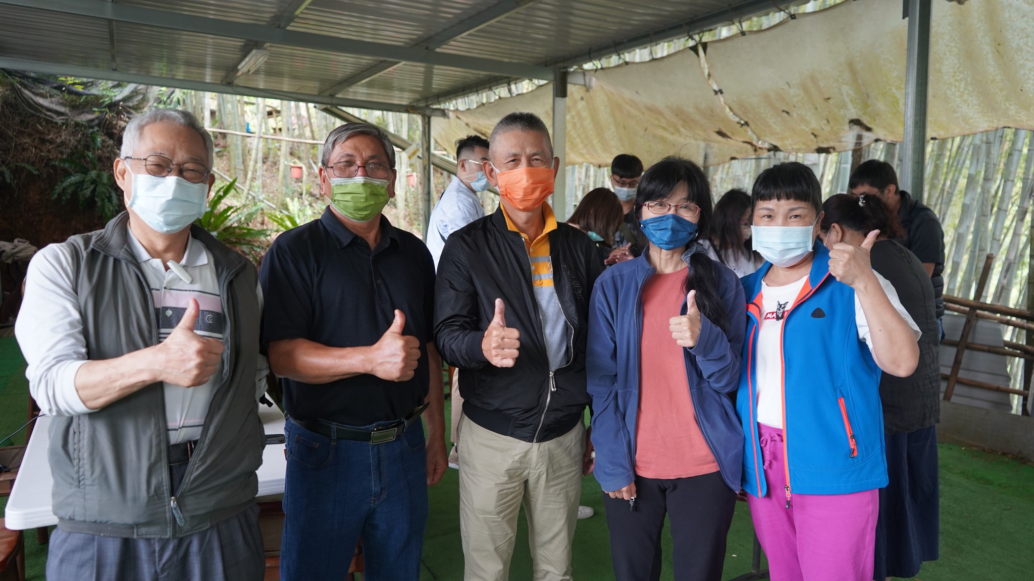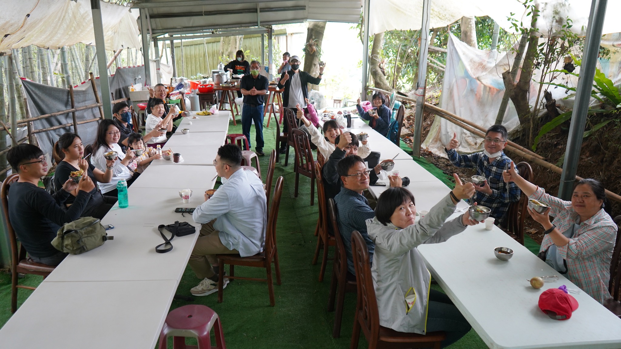 山中美饌鲜葵嫩竹、土雞肉鮮垂涎欲滴;大山背吹起秋涼九降風,讓【老大份休閒農場】因賓客造訪熱鬧非凡;農場主人楊名遠、得力農事助手女兒楊佩怡,歡迎清華大學科技藝術研中心團隊蒞臨參訪,還有遠道的好友齊聚寶地,讓今天的老大份喜氣洋洋,為今日【食農教育】揭開序幕。楊先生說:我是在地的小農,出生成長都在【大山背】,對於這塊土地的寶藏〜農產,具有不可分割的濃厚情感,斯土斯情回饋在地,因此經營此小農場,希望有緣好友參訪時,可以體驗橫山在地的水果、蔬菜及自己飼養的山雞還有特別料理的特色餐點,保證「雙腳練到、眼睛看到、嘴吧吃到」難忘的食農體驗。
