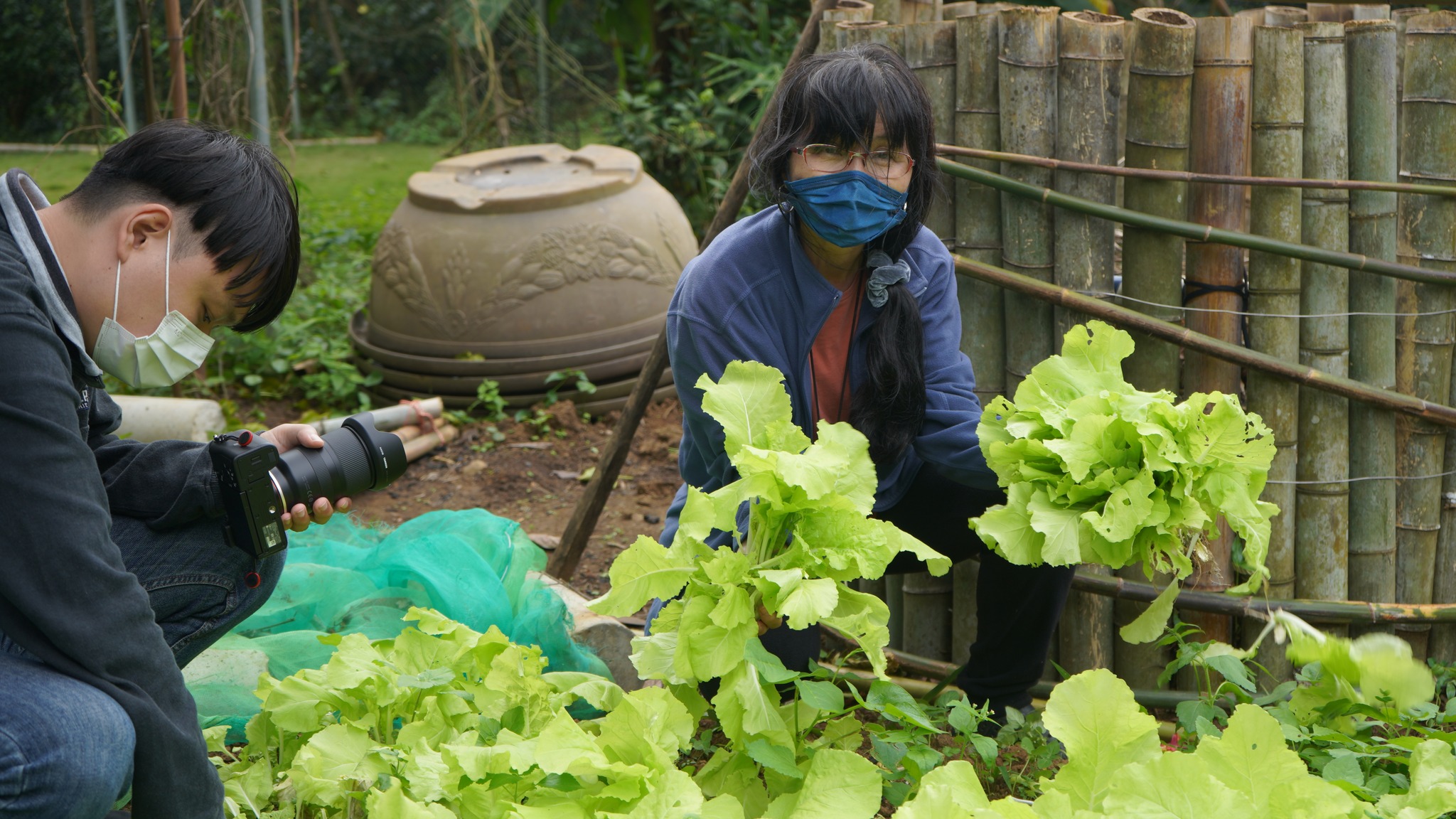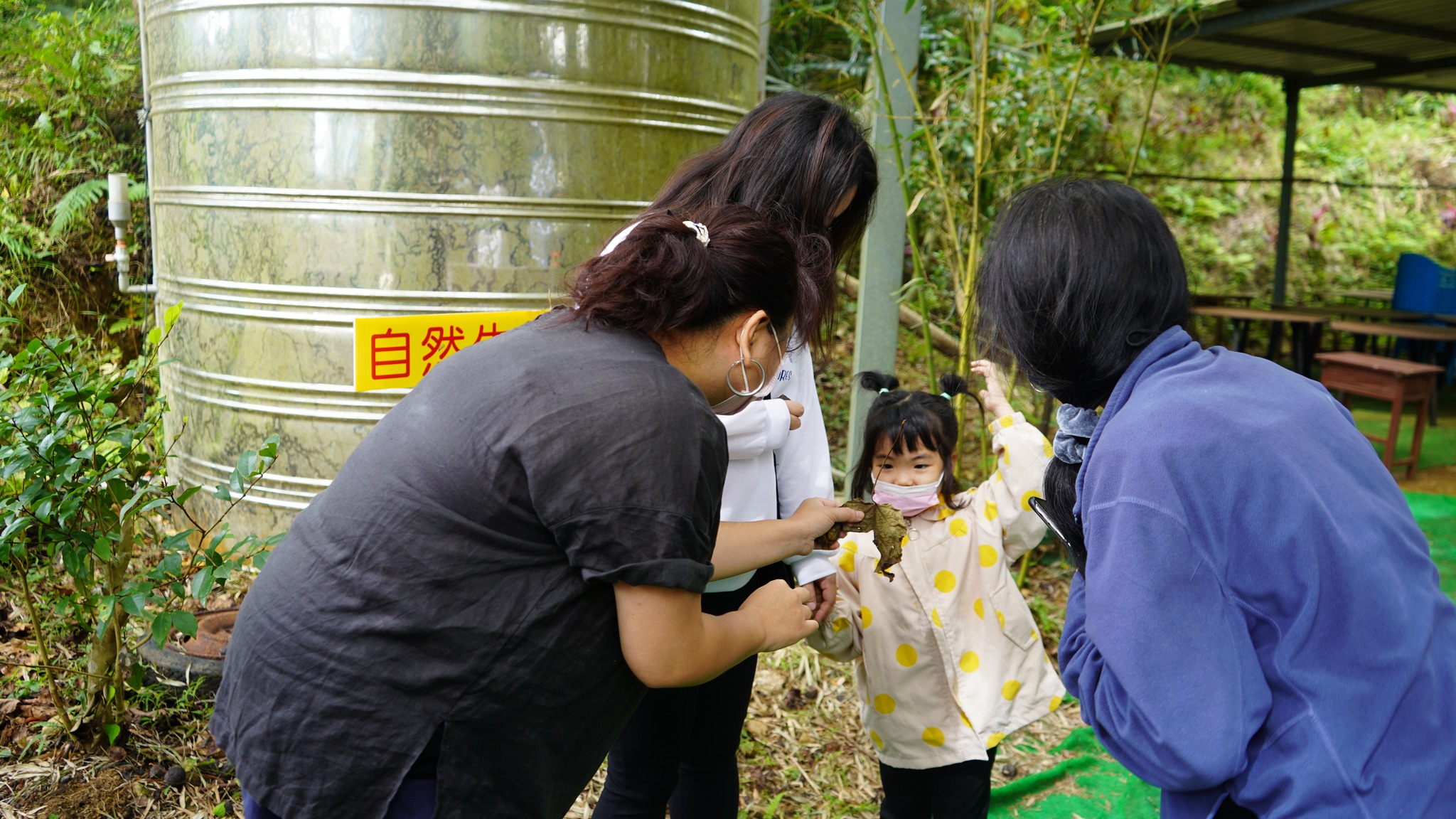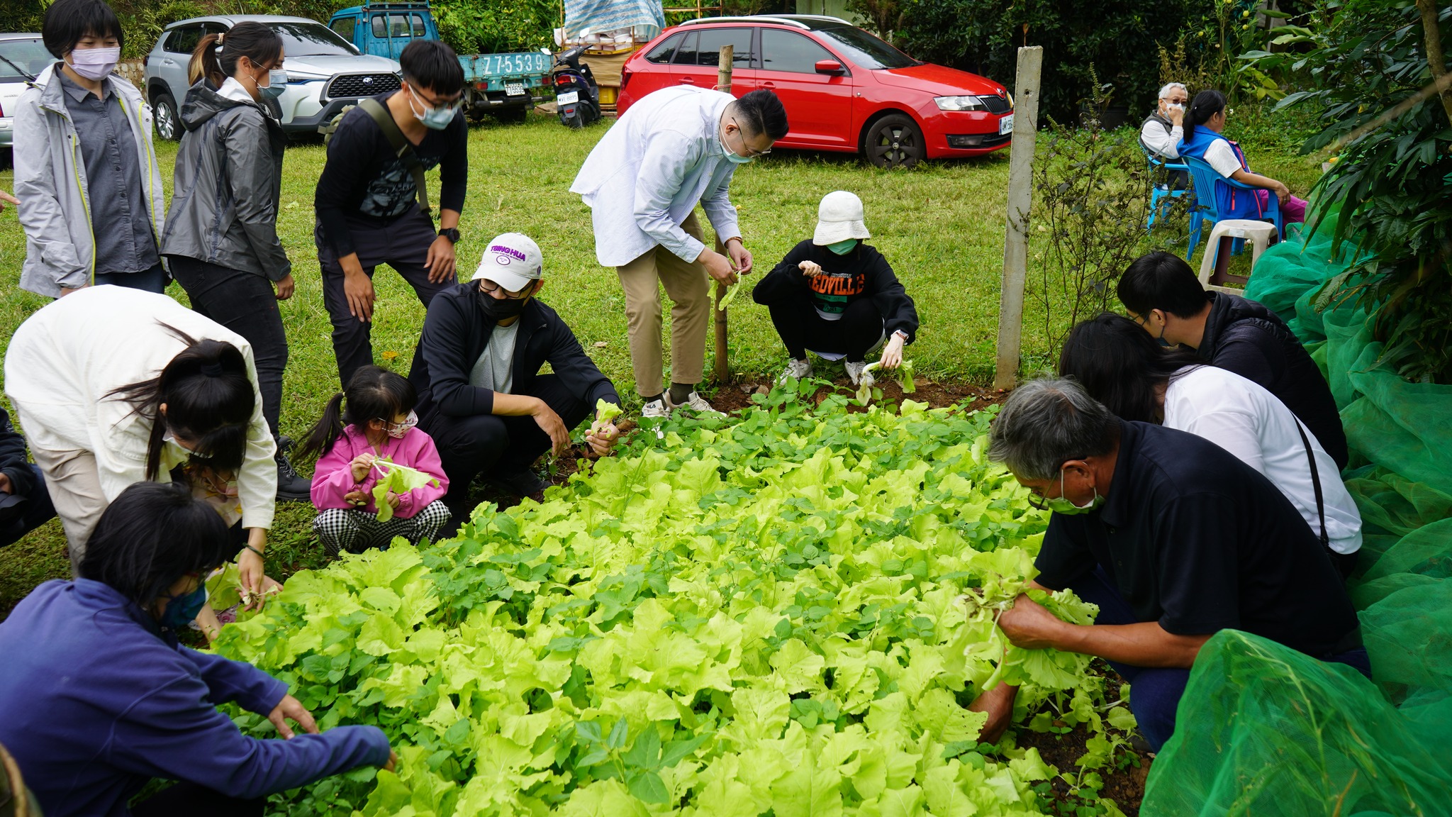 午後的「拔青菜」,是老大份農場的亮點,翠綠如茵的有機蔬菜,楊大哥特別框列種下,方便參觀者體驗親手拔菜,讓大夥手忙腳亂好不開心;大班的恩恩說:拔青菜好好玩喔,不過也會累累流汗,所以媽咪辛苦煮的青菜,一定要吃完喔!